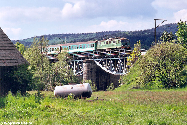 EU07-461 z ogryzkiem z Jeleniej Góry do Marciszowa (ucięta relacja pociagu do Lubawki, zastąpionego na niezelektryfikowanym odcinku autobusami KKA) na moście na Bobrze. Odcinek Ciechanowice - Marciszów.