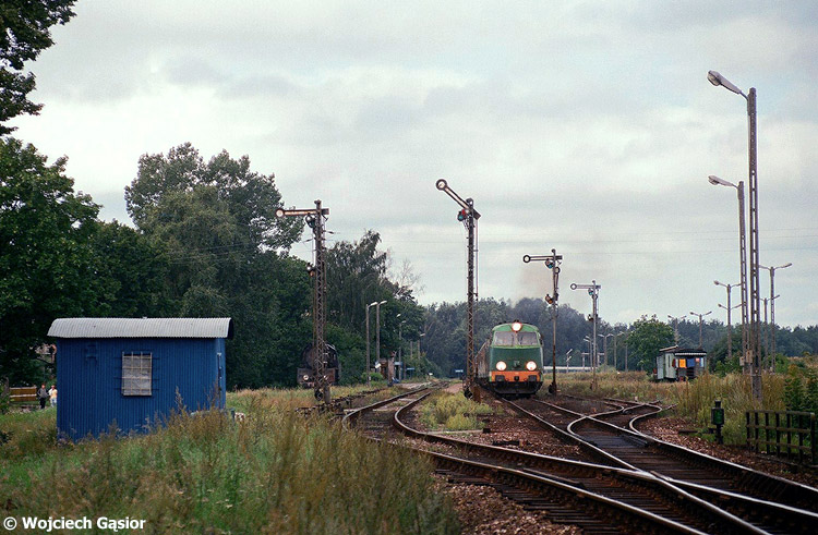 SU45-078 z poc. 65500 ”Niegocin” z Wrocławia i Lublina do Ełku opuszcza stację w Starych Juchach. Uważny obserwator dostrzeże podany semafor wyjazdowy dla pociągu z poprzedniego zdjęcia.