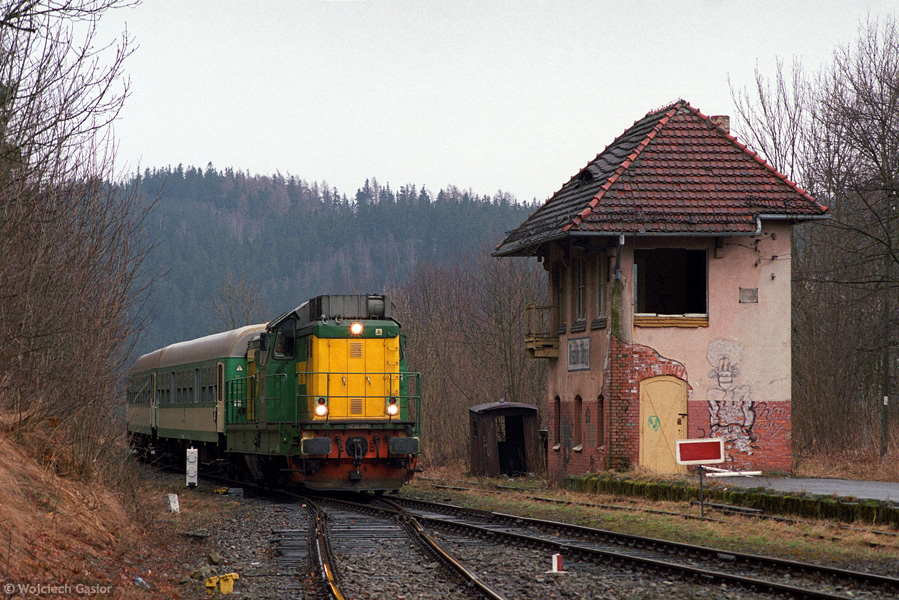 Znów ten sam skład, tym razem sfotografowany pod nieczynną nastawnią wykonawczą dusznickiej stacji.