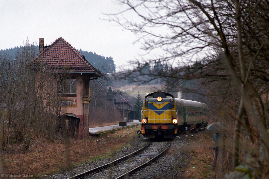 | wykonano | 29.03.2009 | Desperacki kadr z ”Wilczkiem” z Kudowy do Wrocławia w roli głównej. Ale muszę przyznać, że ujęcie byłoby niezłe, gdyby tylko wykarczować parę krzaków. ;) Dla porządku: wykonano w Dusznikach, prowadzi SU42-504. |