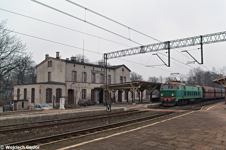 ET22-979 stoi na torze przy peronie pierwszym stacji we Wrocławiu Leśnicy.