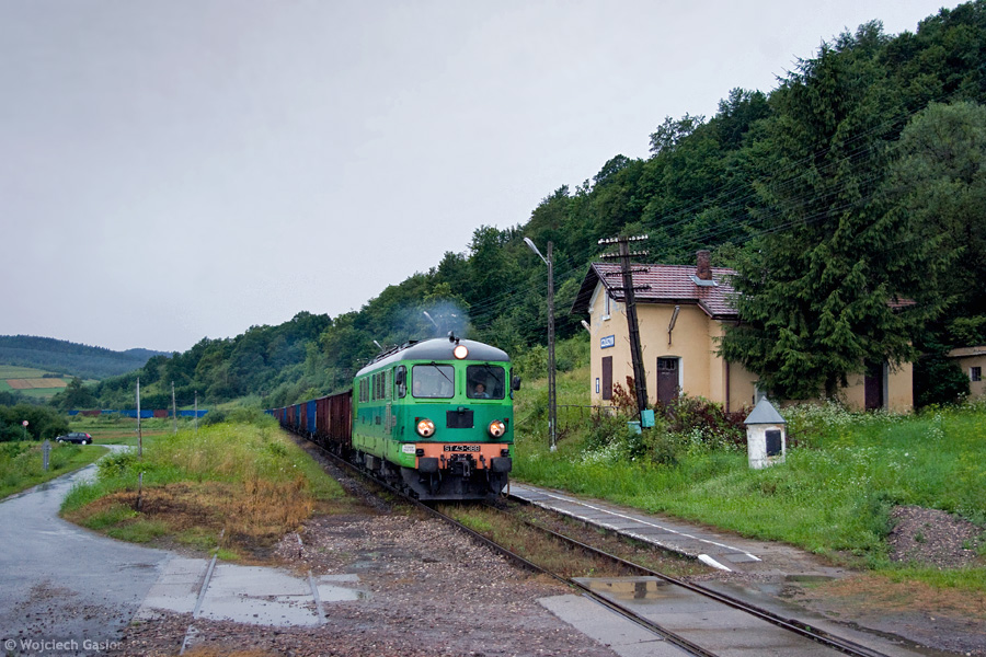 ST43-388 z węglarkami na haku mija przystanek (dawniej - mijankę) w Czaszynie.