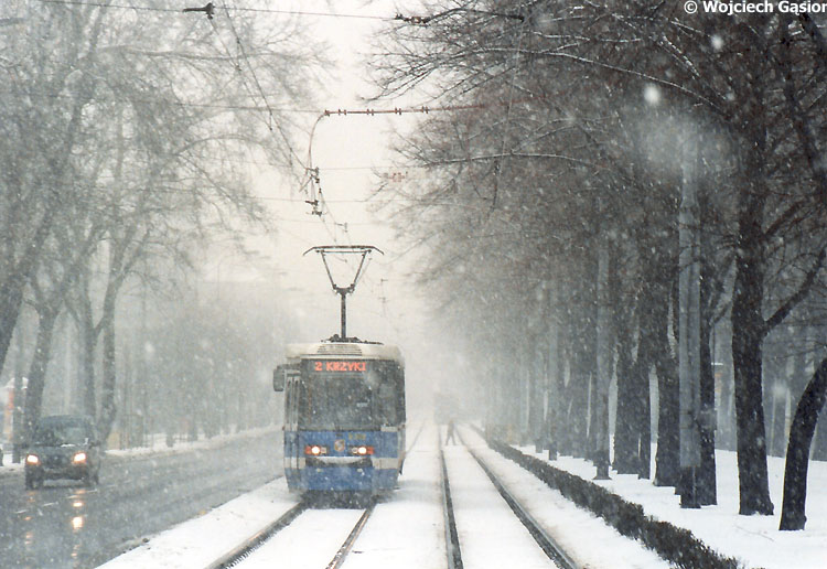 Ul. Powstańców Śl. 105NWr 2382+2381 jedzie w kierunku Krzyków.