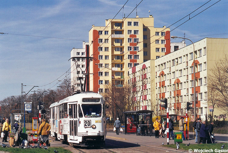 Aleja Hallera. 102Na 2033 w swoim nowym białym wdzianku rusza z przystanku przy ul. Mieleckiej.