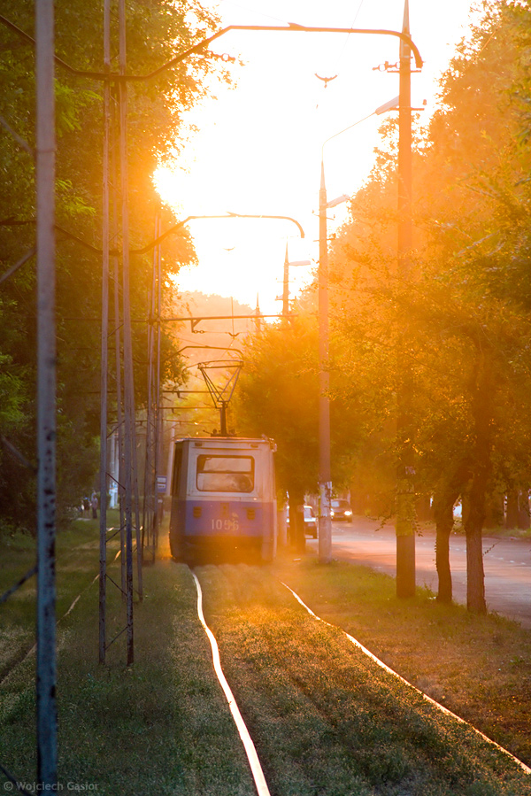 Tramwaj z poprzedniego zdjęcia na konkurencyjnym ujęciu od tyłu.